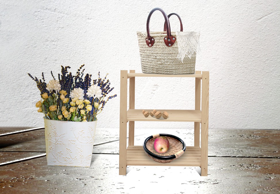 Regał 3-półkowy Regał sosnowy Wymiary: wysokość: 75 cm długość: 60 cm szerokość: 43 cm Waga: 6 kg Kod: EBP 03